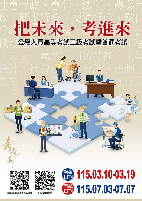 「把未來•考進來」 115年公務人員高等考試三級考試暨普通考試即將開始報名囉