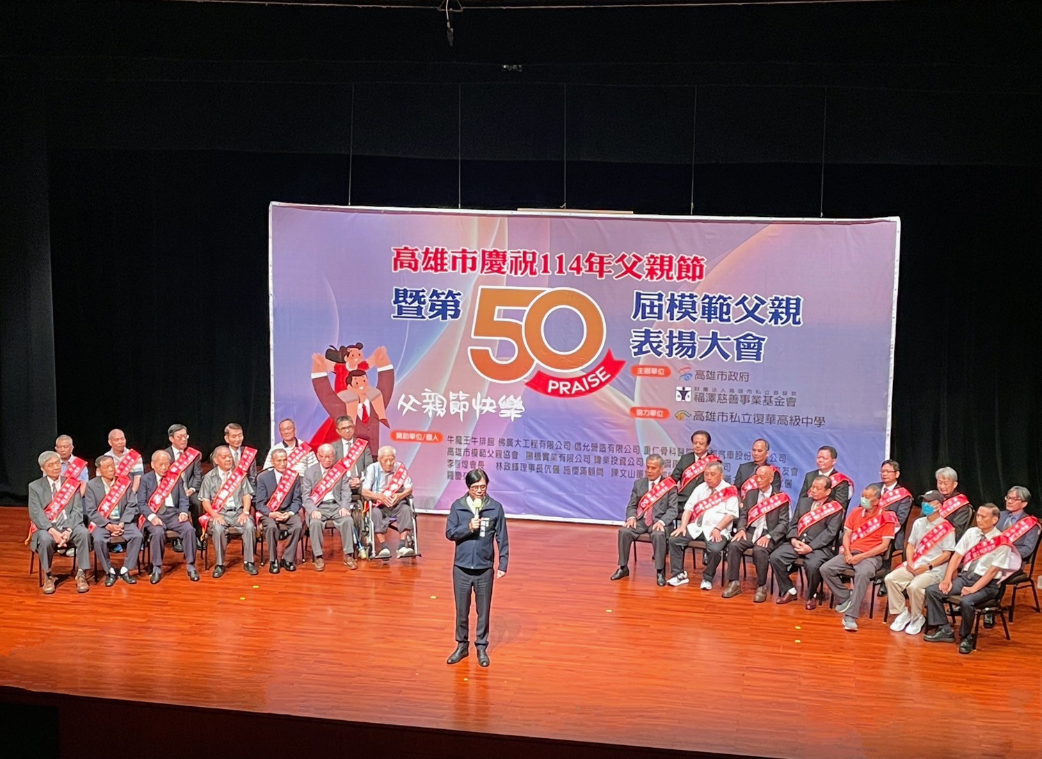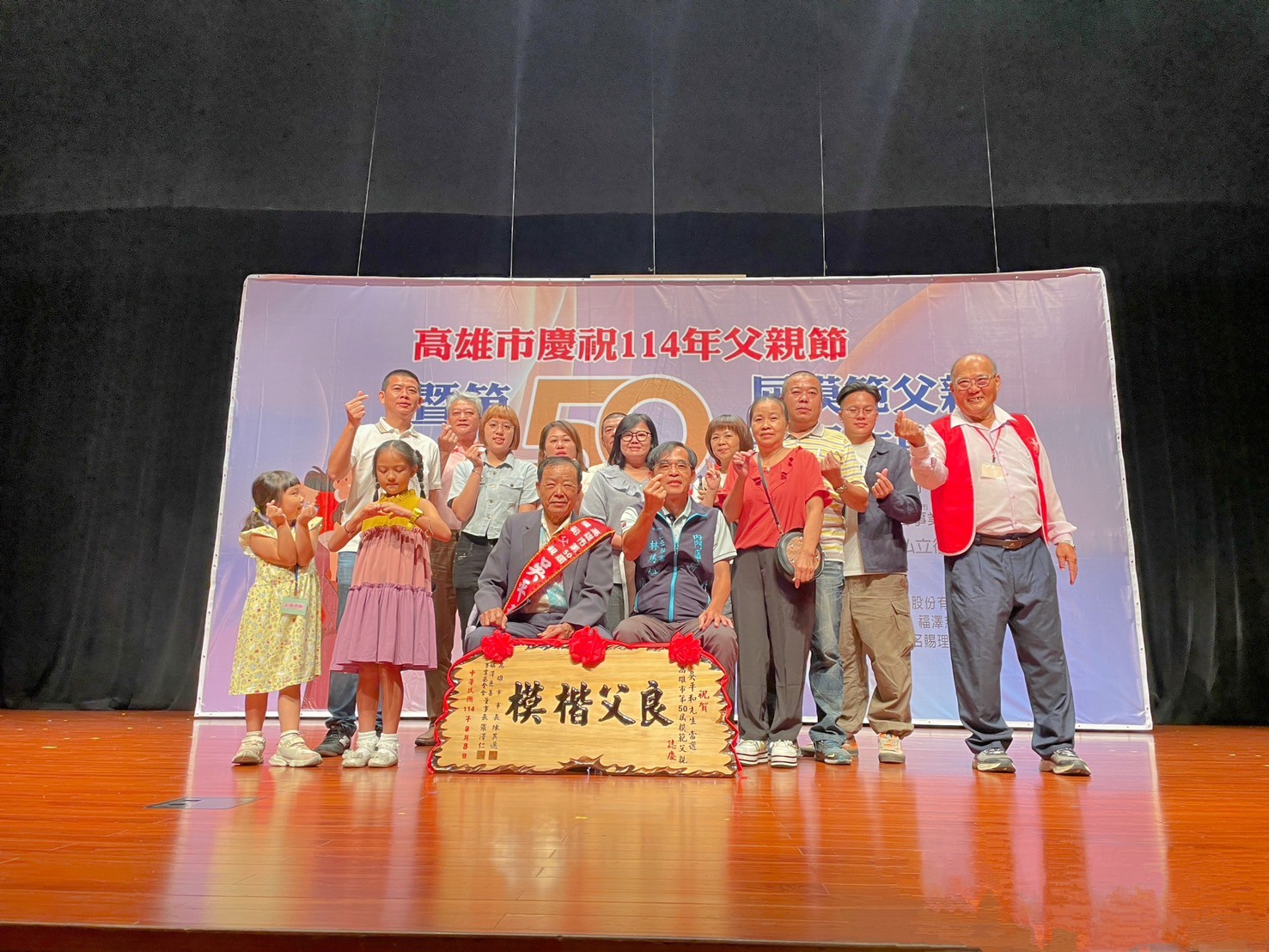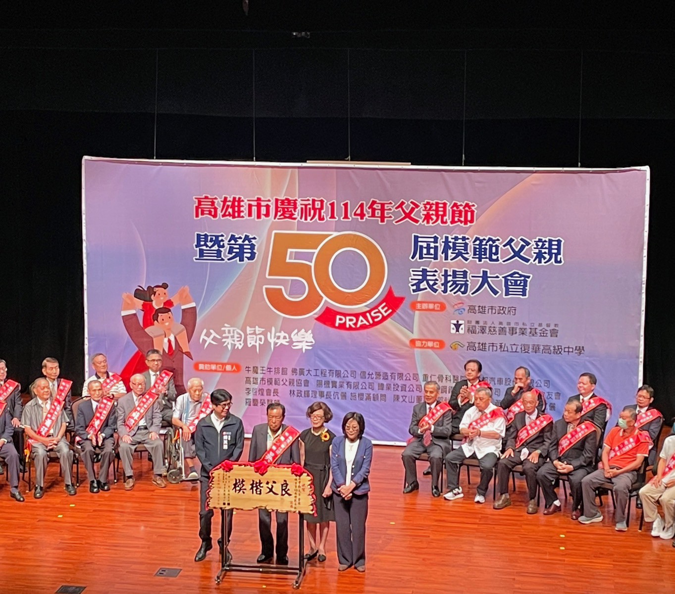 114年8月8日由高雄市政府與財團法人高雄市私立基督教福澤慈善事業基金會假高雄市文化中心至善廳隆重舉行,並由高雄市大家長陳其邁市長、高雄市議會康裕成議長及福澤慈善事業基金會羅淑媛董事共同頒發獎項,本區代理區長林鴻位主任秘書、永富里蒙勝南里長及其子女、孫子女亦共同踴躍陪同出席,也恭禧同日出席授獎的26位模範父親~